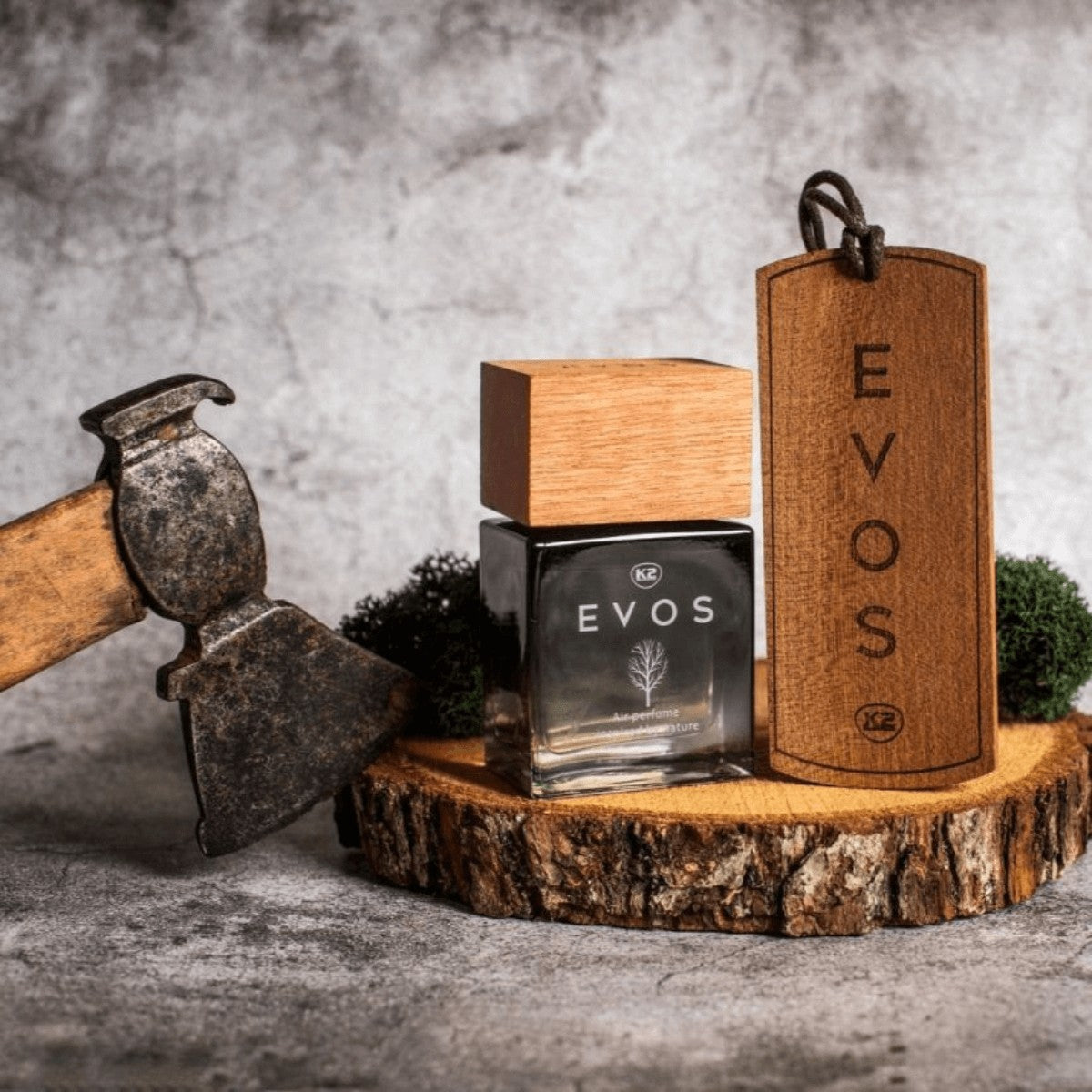 Perfumy Evos w parze z drewnianą zawieszką czynią zapach w aucie prawdziwie nieśmiertelnym.